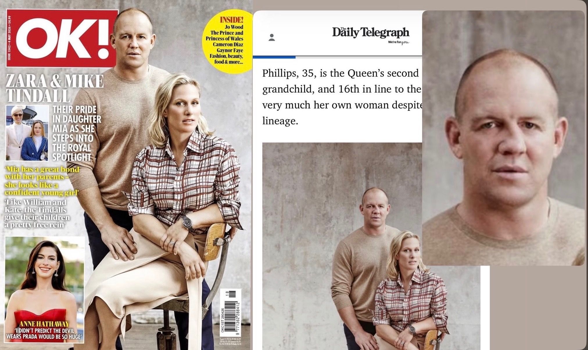 Mike famously went under the knife in 2018 to repair a nose broken at least eight times on the rugby field, a sport I loathed at school, largely for the threat it posed to my own. But here’s the thing: OK! never actually sat the Tindalls down for a shoot. The photo is ten years old, taken well before Mike’s rhinoplasty, when the evidence of those eight breaks was very much still on his face. Someone, it seems, decided to give him the nose job a few years early.